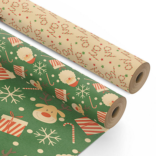 Kraft & Co 2 Pack Christmas Wrapping Paper Roll (Festive)